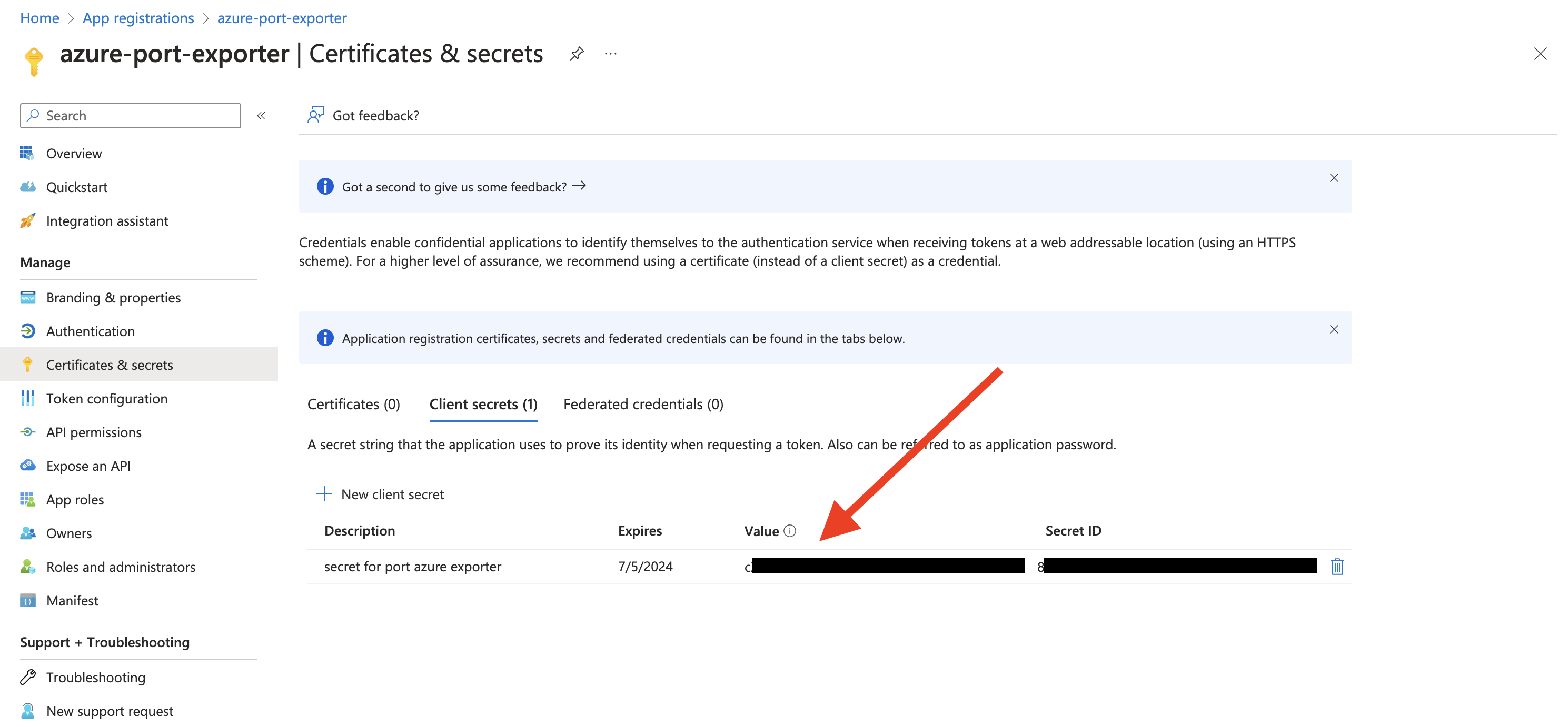Create a client secret for the App Registration.