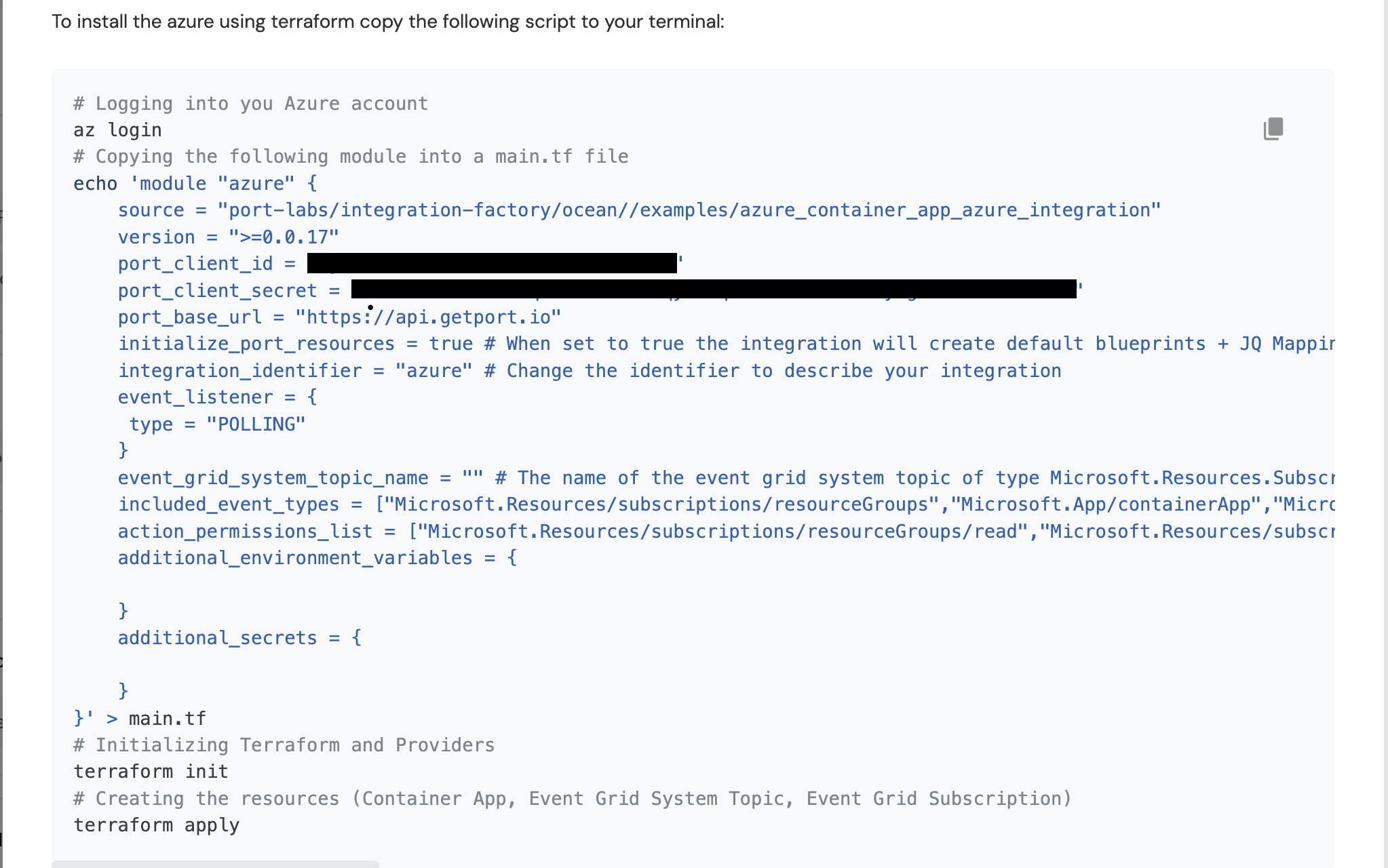 - Refer to the Resource Templates page for templates on how to map Azure resources to Port.