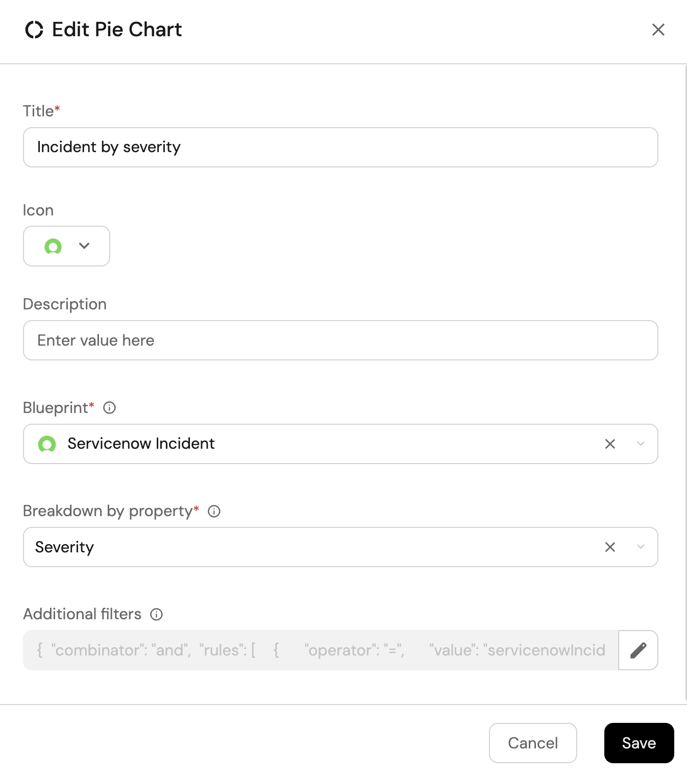 2. Title: Incident by severity (add the Servicenow icon).