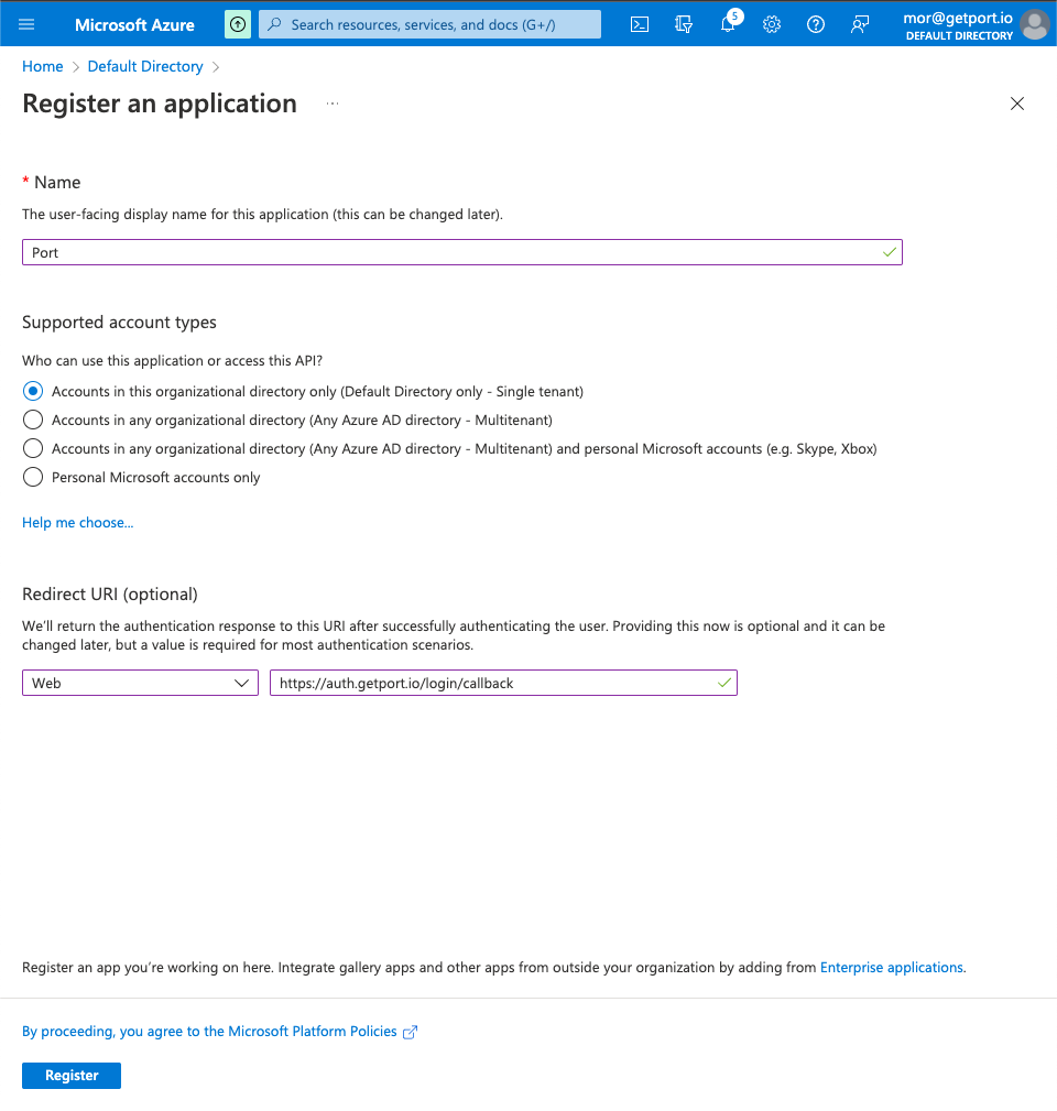 If you have multiple Port environments, it is possible to setup an OIDC Azure AD SSO connection for each environment.
