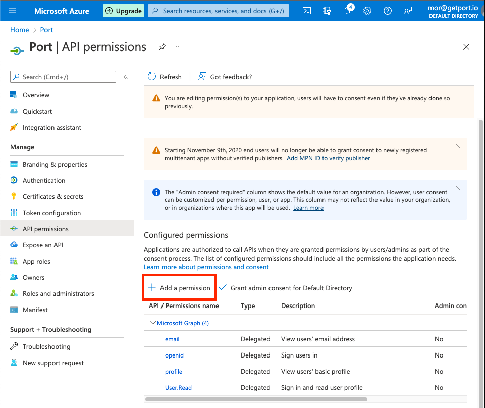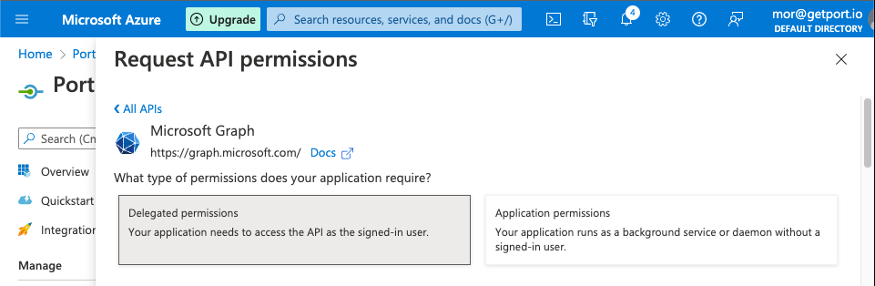 If you wish to pull in AzureAD groups into Port, you will also need to add the Directory.Read.All permission.