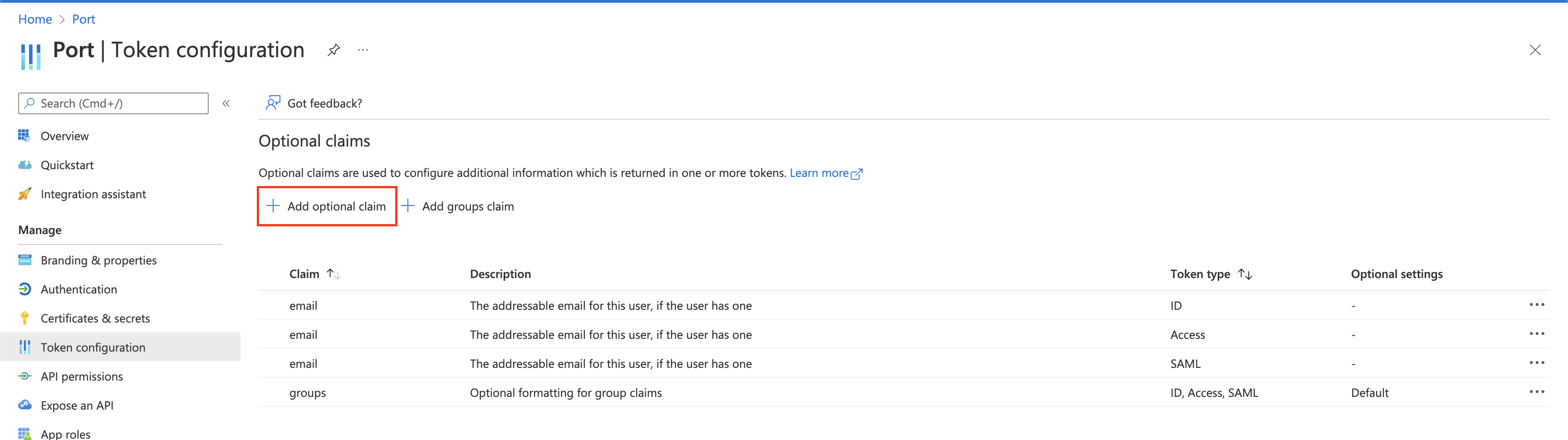 • Users who need access to Port must have a valid value in their Email field in Azure AD.