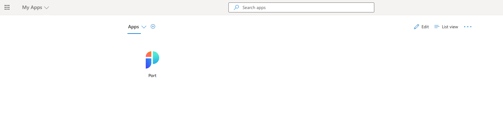 • Use the https://myapplications.microsoft.com dashboard provided by Azure AD and select the desired Port environment to connect to.